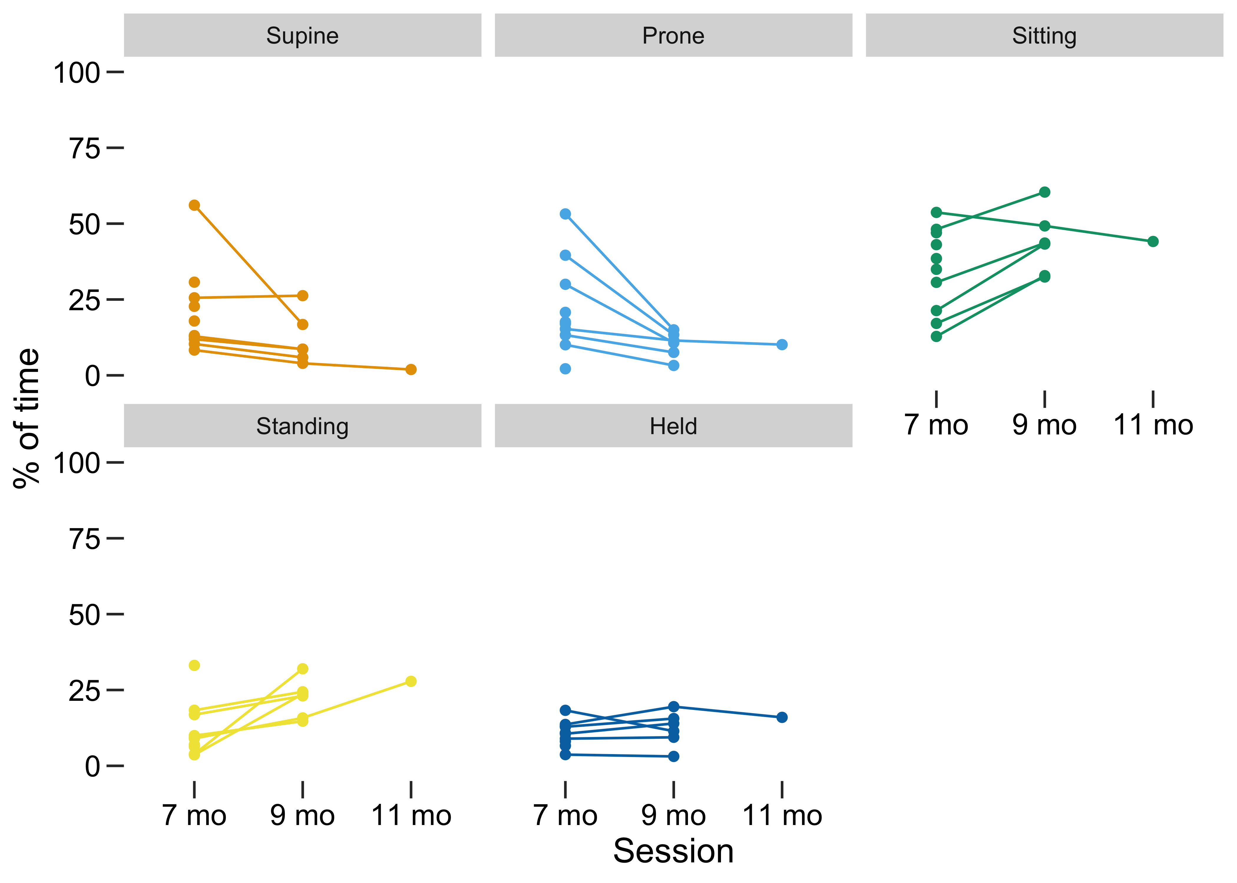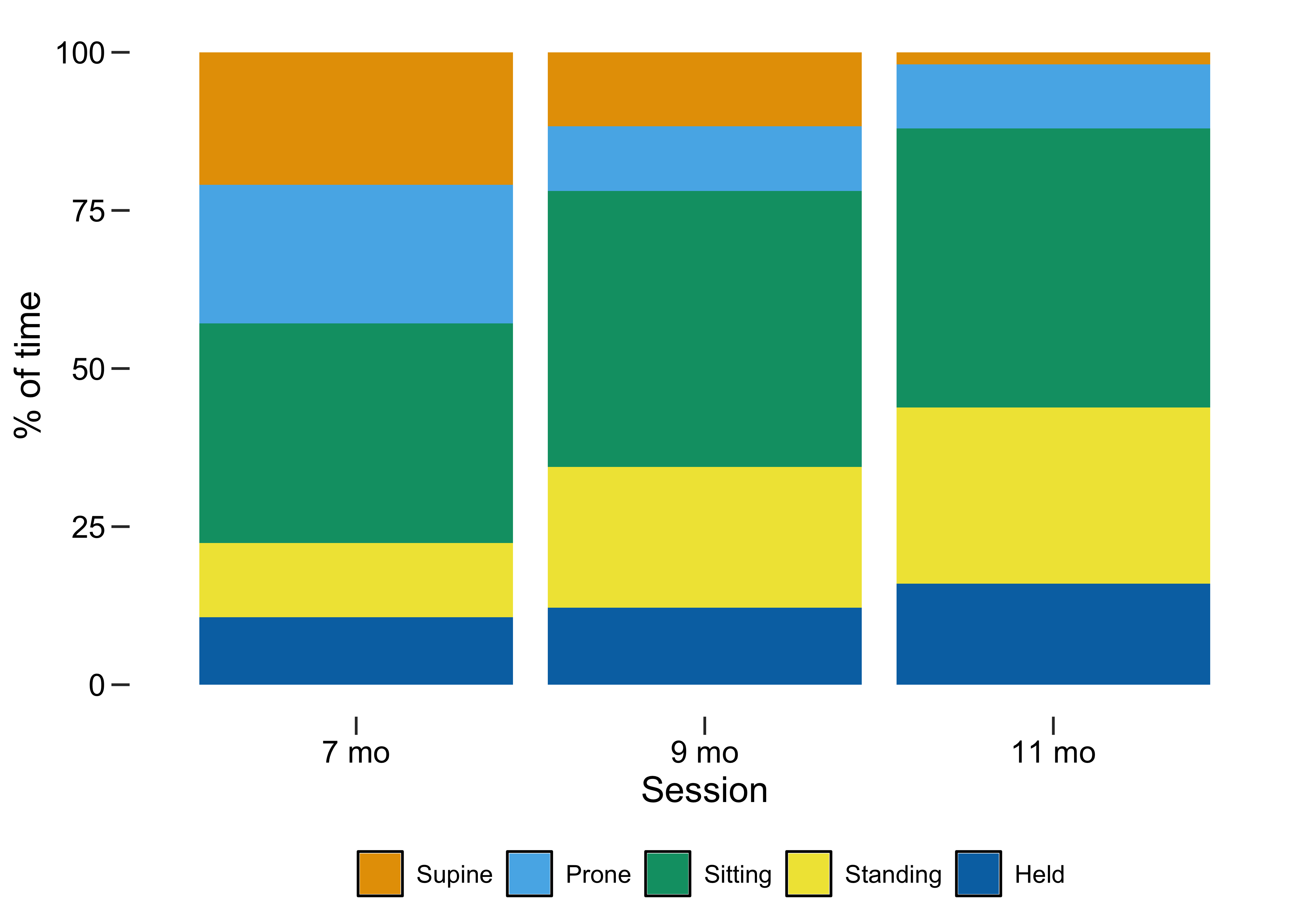 pal <- c("#F0E442","#009E73","#56B4E9", "#E69F00","#0072B2") %>% set_names(c("Standing", "Sitting", "Prone", "Supine", "Held"))